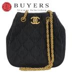 中古 シャネル ショルダーバッグ ココマーク コットン サテン ブラック ゴールド金具 斜め掛け 2番台 チェーン 希少 レディース 女性