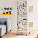 鳥かご大型46×46×149CM二層透明アクリル前面C&J高強度豪華インコケージ視聴効果アクセサリー豊富ステンレスコップ純木の棒飼育しやすい