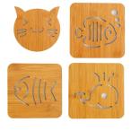 鍋敷き おしゃれ コルクマット 鍋敷き 耐熱 4個セット 木製 耐熱 マット マット木製コースターソリッドウッドカップクッション装飾カトラリーパッドアンチスリッ