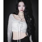 「 2color 」レースアップコルセットリボンショートレーストップス / laceup corset ribbon short lace tops