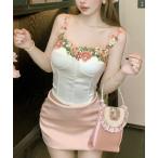 ブラウス シャツ 立体刺繍フラワーコルセット風キャミソール レディース