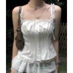 キャミソール レース リボン コルセット ペプラム キャミソール トップス