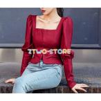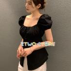 トップス レディース シャツ ブラウスレディース 春 スクエアネック 無地 シンプル ガーリー ウエスト絞り ブラウス 半袖 韓国ファッション