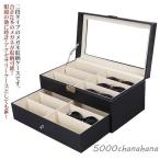 メガネ収納ボックス コレクションケース 二段式 メガネ収納ケース 12本入り レザー調 引き出し 大容量 ガラス天窓 北欧 メガネケース メガネ サン