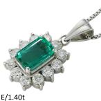 音羽屋■ コロンビア産 エメラルド/1.40ct ダイヤ/1.00ct Pt900/Pt850 デザイン ネックレス 鑑別書付き 仕上済 【中古】