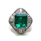 エメラルド 8.43ct コロンビア ダイヤモンド(F2)&ダイヤモンド 1.06ct PT900 GIA リング