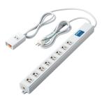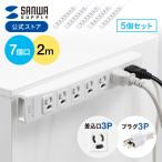電源タップ 延長コード 2m コンセント タップ テーブルタップ マグネット 固定 抜け止め 雷ガード 3ピン 3P 一括スイッチ 節電 7個口 5個セット 700-TAP035--5