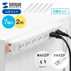 電源タップ 延長コード 2m コンセント タップ テーブルタップ マグネット 固定 抜け止め 雷ガード 一括スイッチ 節電 7個口 5個セット 700-TAP033--5