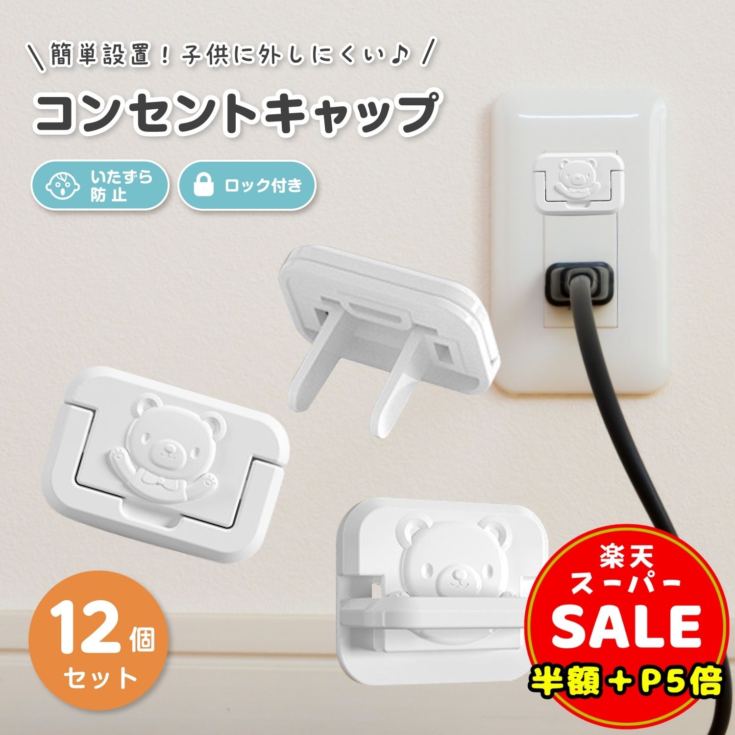 \半額/【LINE追加5%OFF&P5倍】【12個セット】コンセントカバー 赤ちゃん コンセントカバー コンセントキャップ コンセントカバー 2口 おしゃれ かわいい くまさん セーフティ 赤ちゃんを守る 出産準備 送料無料