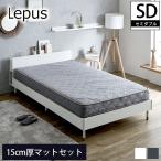 Lepus(レプス) 棚・コンセント・LED照明付きすのこベッド セミダブル 15cm厚ポケットコイルマットレス(ネルコZマットレス)セット