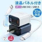ACアダプター PD急速充電器 30W 3ポート タイプc 充電器 GaN搭載 USB コンセント スマホ 携帯充電器 typec Lightning iphone ipad Android 1年保証