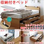 ベッド セミダブル 日本製ポケットコイルデザインマットレス付き 引出し 床下収納 棚 コンセント チェストベット