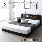 (タイムセール中) シングルベッド マットレス付き 照明 コンセント 国産ポケットコイル(レギュラー)