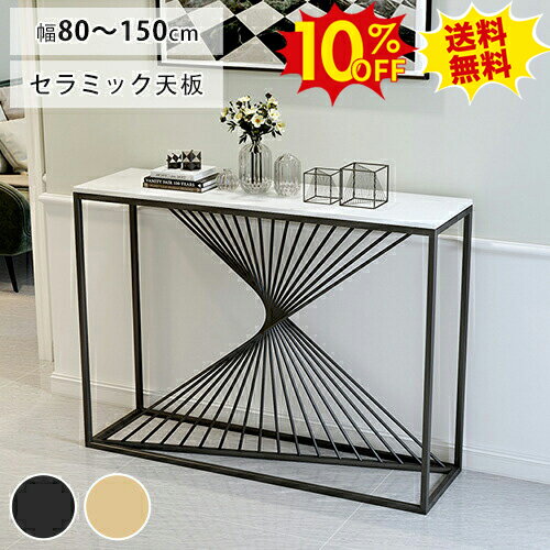 10%OFF★SS期間限定 コンソールテーブル スリム 大理石 玄関テーブル セラミック天板 ホワイト 白 幅80 100 120 150 玄関廊下 玄関収納 サイド ナイトテーブル 奥30 高80cm カウンターテーブル オープンラック 北欧 棚 ゴールド ブラック 高級 おしゃれ 北欧風