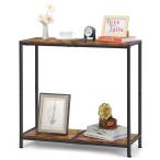 【並行輸入品】コンソールテーブル インダストリアルソファテーブル 棚付き 2段 玄関テーブル リビング 玄関 オフィス ラスティックブラウン T