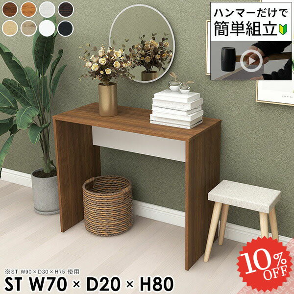 コンソールテーブル スリム 奥行20cm サイドテーブル おしゃれ 北欧 コンソールデスク 木製 玄関 テーブル コの字 コンパクト 高さ80cm 花台 作業デスク ベッドサイドテーブル 作業台 机 省スペース 薄型 デスク サイドデスク リビング 【幅70奥行20高さ80cm/HammerST】 ★