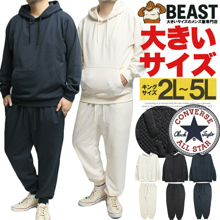 コンバース(CONVERSE) セットアップ 大きいサイズ メンズ ジャージ上下 ふくれ ジャガード ロゴ プルオーバー パーカー スウェットパンツ ジャージ ルームウェア 部屋着 スポーツ スエット イージーパンツ ジョガーパンツ ストリート系 ワークマン