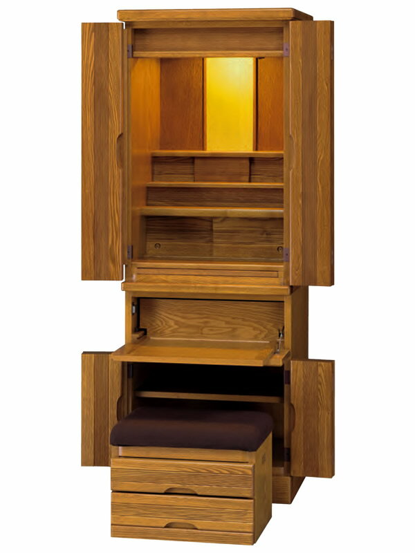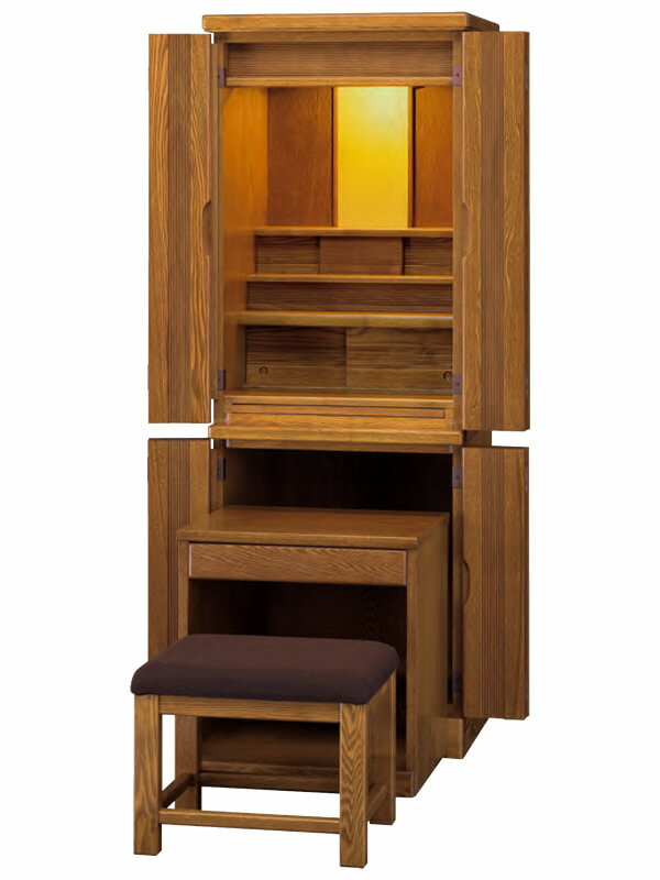 仏壇 小型 コンパクト 小型仏壇 コンパクト仏壇 モダン仏壇 家具調仏壇 リビング 高さ 145.2cm LED照明付 国産 【 東海 48号 タモ 経机・椅子付 】