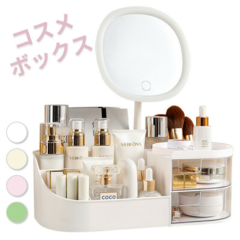 【マラソン限定★ 31%OFF~1点購入で!】メイクボックス 大容量 LEDミラー付き 無段階調光 コスメボックス 化粧品 収納ケース アクリル 透明 引き出し付き 持ち運び可 ドレッサー 収納 メイクケース かわいい
