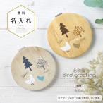 コンパクトミラー 手鏡 名入れ 両面印刷 ダブルミラー 丸型 拡大鏡 木目 ウッド 鳥柄