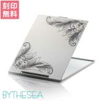 手鏡 コンパクトミラー 刻印無料 アルミニウム ハワイアン手彫り スクロール プルメリア 折りたたみ式 化粧鏡 40代 50代 30代 20代