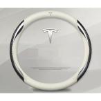 テスラ TESLA ホワイト ハンドルカバー コンパス 38CM 高品質 専車ロゴ ハンドル保護 ステアリングホイールカバー O型
