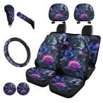 【並行輸入品】KEIAHUAN パープルローズ ハチドリ カーシートカバー フルセット 女性用ハンドルカバー/カップコースター/ギアシフト&ハン