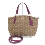コーチ COACH トートバッグ ショルダー 2WAY PVC レザー シグネチャー 総柄 ロゴ ゴールド金具 茶色 ブラウン 紫 パープル F38267