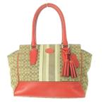 コーチ COACH ハンドバッグ キャンバス レザー 革 レガシーシグネチャー ストライプ 赤 レッド 19915 /CK13 ■GY18 レディース
