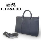 【超美品 ほぼ未使用】 コーチ COACH 2WAY ビジネスバッグ ブリーフケース 鞄 レザー 本革 ネイビー 紺 メンズ 紳士 柔らかい スリム 薄型