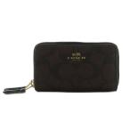 コーチ COACH シグネチャー ダブルジップ コインケース 小銭入れ ラウンドファスナー 総柄 ダークブラウン F63975 /MI ■OS レディース