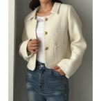 コート アウター ステンカラーツイードジャケット レディース