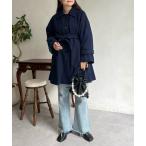 ステンカラーコート コート quaranciel:「手洗い可能」シャンブレー オーバー ステンカラー コート レディース