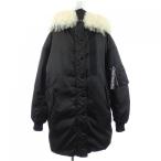 美品/国内正規 PRADA プラダ 29E117 R212 トライアングルプレート シープスキンファー フーディダウンコート 38 レディース