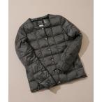 ダウンコート ダウンジャケット バックボタンスウェードノーカラーコート レディース
