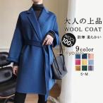 【ウール100%】ウール コート レディース ロングコート アウター ダブルフェイス チェスターコート ウエストベルト シンプル ベーシック きれいめ カジュアル