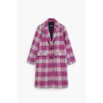 コート チェスターコート チェック柄 オーバーサイズ ウールブレンドコート ピンク レディース