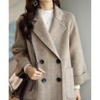 コート チェスターコート さっと、羽織るだけで高級感。フェイクウールダブルテーラードロング丈コート レディース