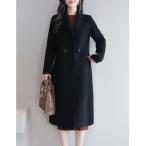 コート チェスターコート さっと、羽織るだけで高級感。フェイクウールダブルテーラードロング丈コート レディース