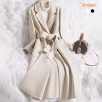 両面コート テーラード ジャケット レディースロングコート チェスターコート秋冬 通勤 お洒落 ベルト ウールコート