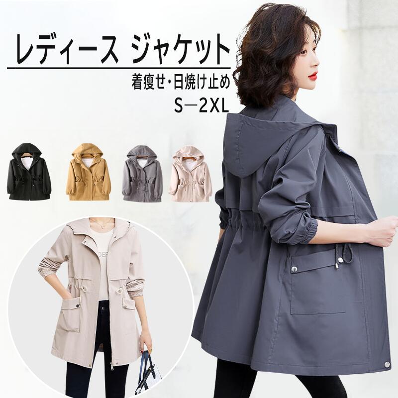 【在庫なくなり次第終了★対象商品50%OFF】 マウンテンパーカー ウィンドブレーカー ブルゾン トレンチコート フード付き ドローコード コート ジャケット レディース 長袖 体型カバー パーカー スプリングコート アウター 裏地あり 軽量 通気 防風 春 秋 冬 着痩せ キレイめ