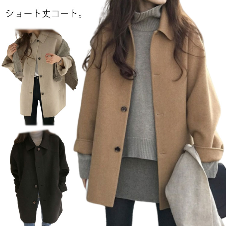 ショート丈コート レディース Pコート ビジネス カジュアル 通勤 OL オフィス 秋 冬 ピーコート コート 無地 ゆったり アウター ショートアウター ショート丈 waitao-2064-gg 海外通販