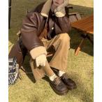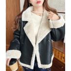 ムートンコート ボアコート フェイクレザー×フェイクファームートンショートブルゾン レディース