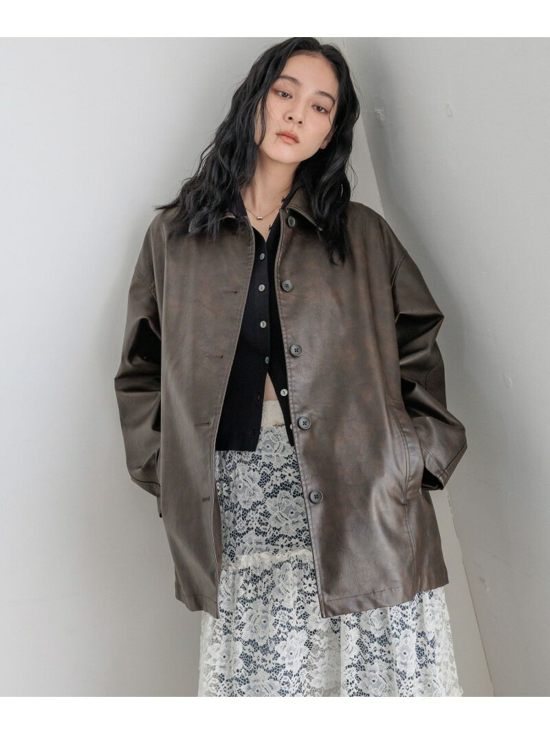 コート アウター ビックシルエットフェイクレザージャケット レディース