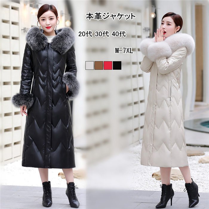 【期間限定全品10%OFF】レザー ダウンコート レディース 本革 生地 ラム ラムレザー レザーコート フード付き コート ロングコート 冬 きれいめ ダウン 大きいサイズ 暖かい 防寒 アウター ダウンジャケット おしゃれ プレゼント ギフト