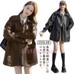 レザージャケット レディース レザーコート ミドル丈 ブルゾン アウター 羽織り 春 秋冬 合皮 革 フェイクレザージャケット ライダースジャケット
