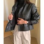 コート アウター デザインポケットフェイクレザージャケット レディース