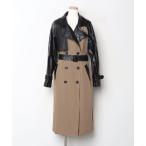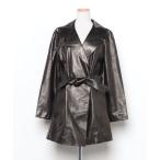 ステンカラーコート コート ベルト付き襟フェイクレザーステンカラーコート レディース