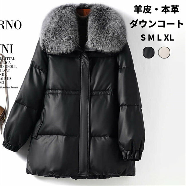 【店内全品!20%OFF発行中】ダウンコート 本革ジャケット レディース ファーコート 革ジャケット ロングジャケット 羊皮 防風防寒 黒 レディースジャケット ロングコート 秋冬 おしゃれ 新作 ジャケット レザーコート 立て襟 30代 40代 50代