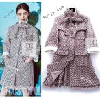 シャネル コート CHANEL モーブピンク ブラック リボン レザー カフス ウール ツイード カール・ラガーフェルド 99万 超美品 36 38